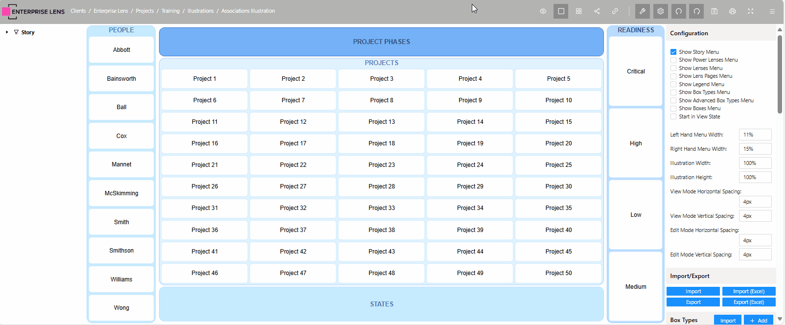 We will be using the Association Illustration from the Enterprise Lens training library to demonstrate each of these methods.