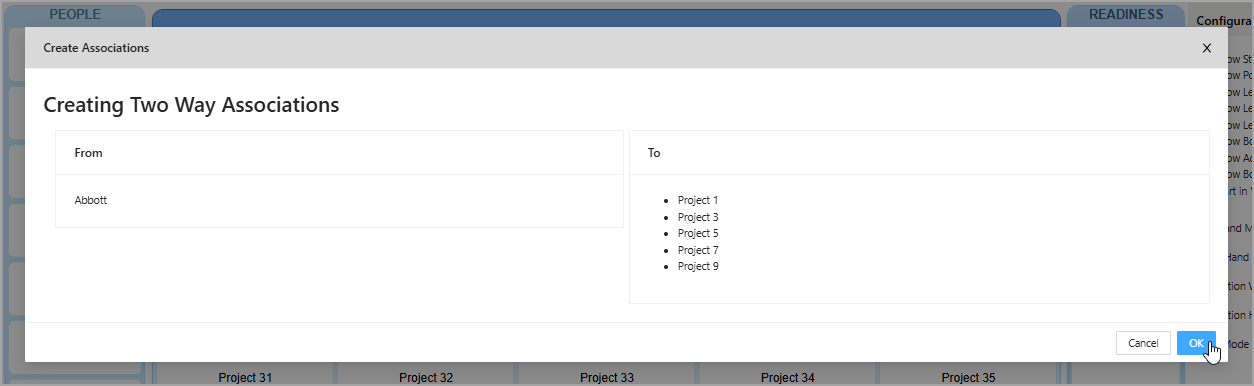 We have included Change Readiness in this example so you can try creating one more association, using any method you prefer.