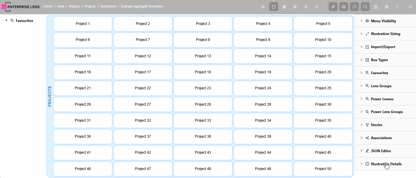 In the below image, the Illustrator groups Lenses for States and Projects with a Box Type under the Strategy Favourites Group.