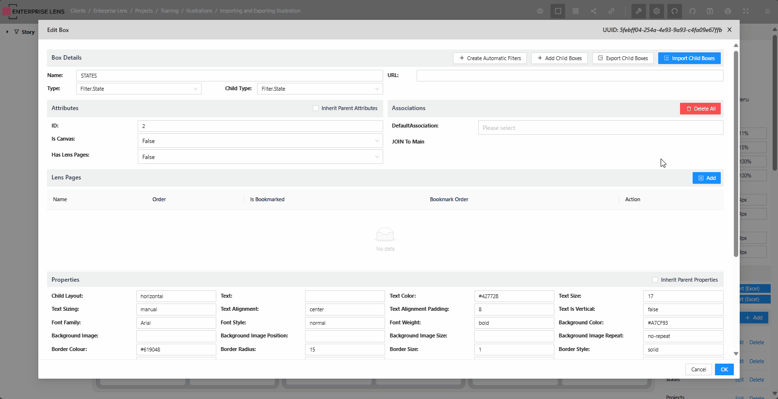 The relationship between States and Projects is already made, however you are required to create a box containing each State in the States box. To do this, we will be using the Export and Import Child Boxes feature.