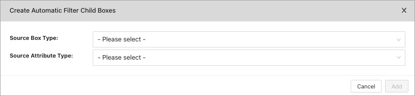 | Source Attribute Type | This is the Attribute you will select to import.Every choice available in this attribute type will be shown below as a list. Clicking "Add" at this stage will import the attributes from the attribute type as individual child boxes within the box you are editing. |