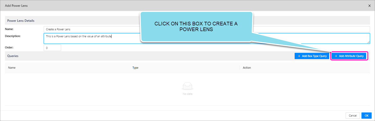 To create a new Power Lens, click the + Add button on the right-hand side. Then a form called Add Power Lens will appear.
