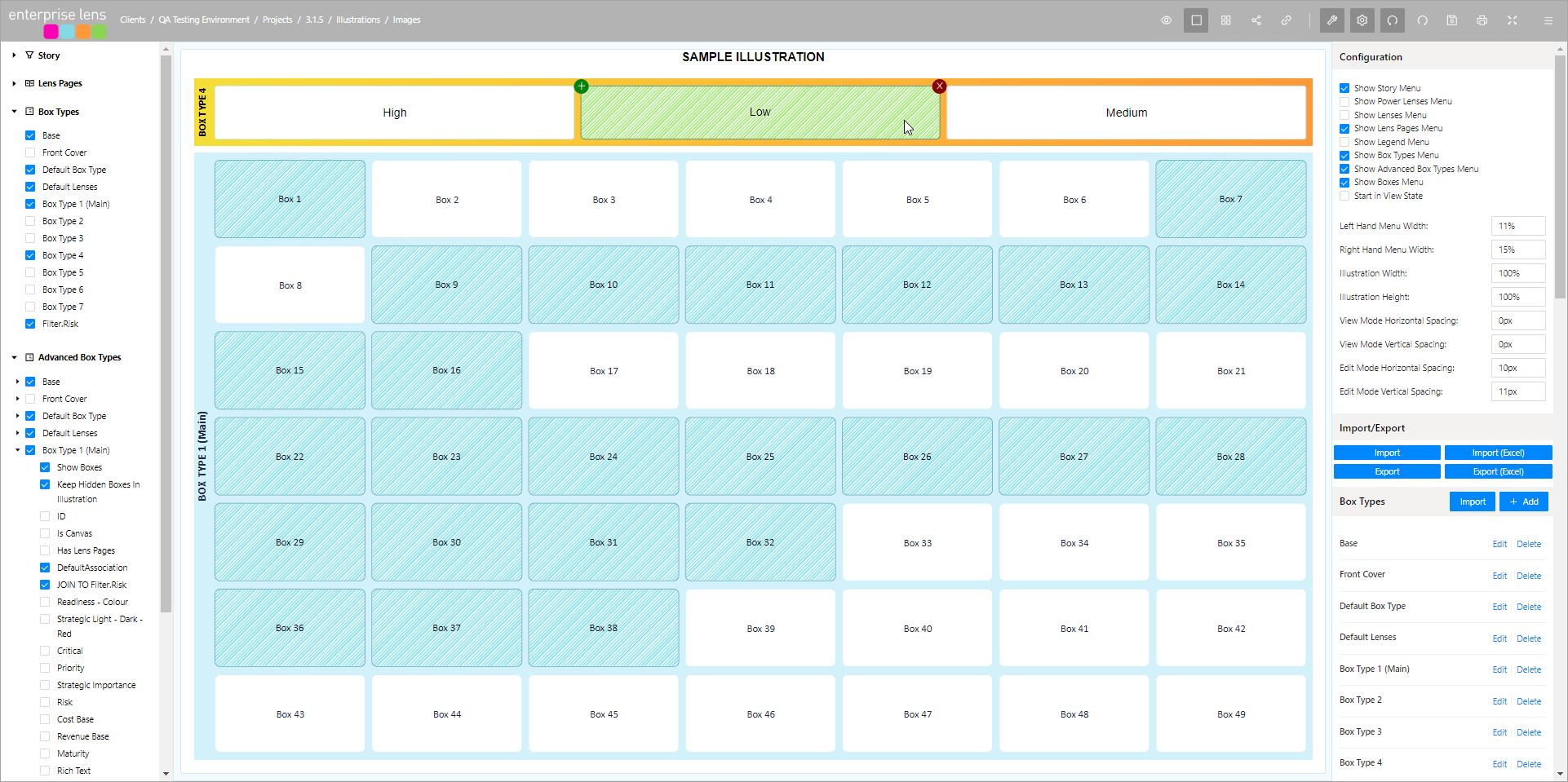 By selecting add the distinct values found for the Risk Attribute within the Box Type 1 (Main) are inserted into the Illustration and the associations between the two box types are created.