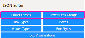 To add a Power Lens to your illustration you will need create the structure and names that you would like see in the menu. Everything to do with Power Lenses is maintained in the right hand menu within the JSON Editor section